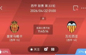周二西甲联赛:皇家马略卡VS瓦伦西亚 比赛时间:2026-04-...